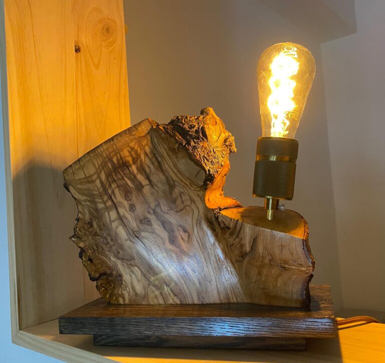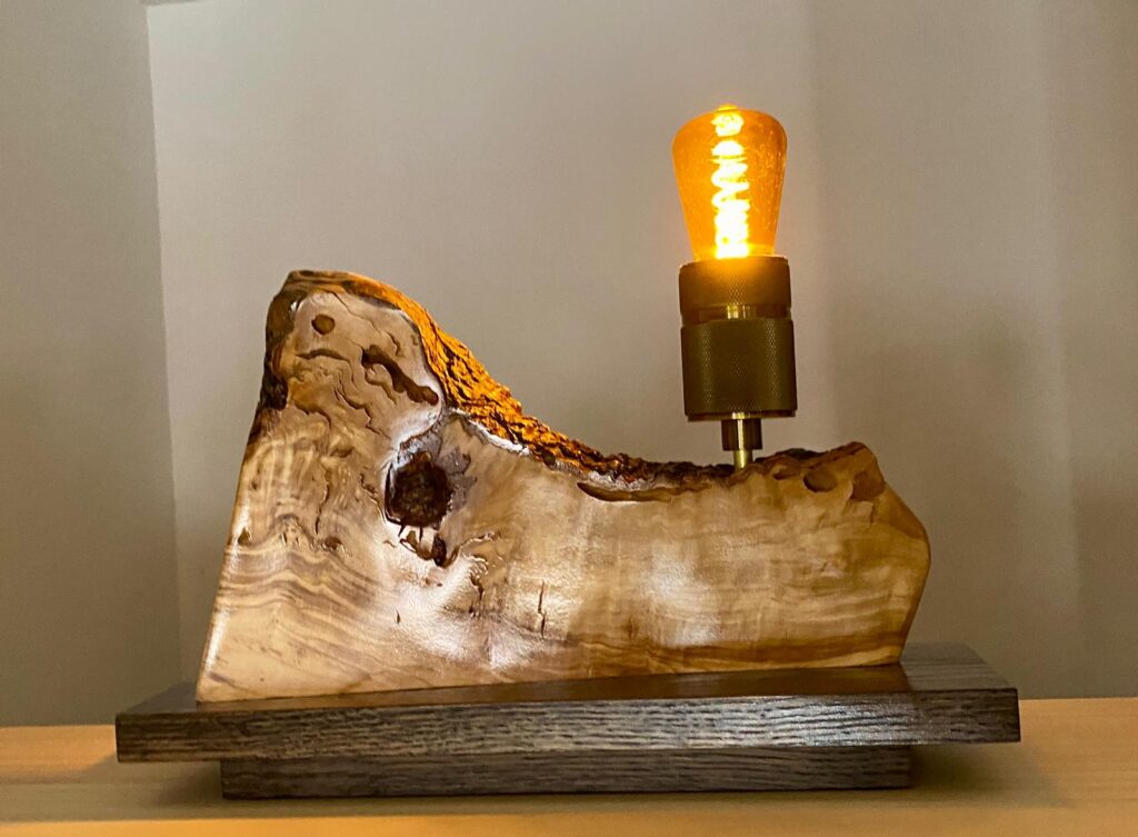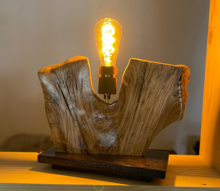 Piezas únicas diseñadas y realizadas artesanalmente a partir de madera de olivo centenario sobre peana de roble ebonizado.